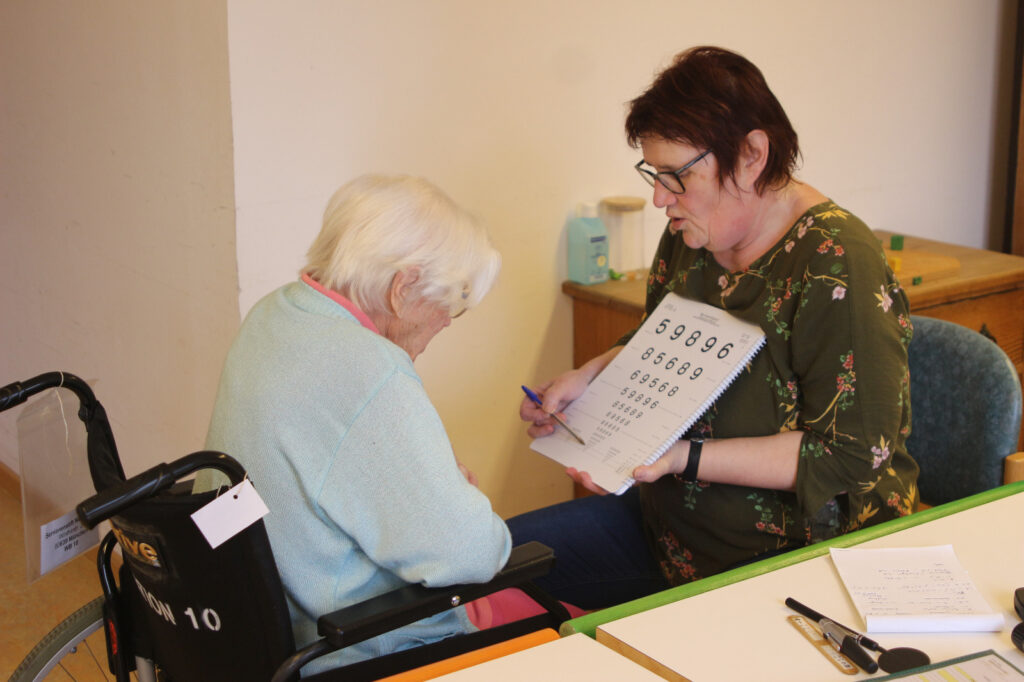 Orthoptistin Andrea Meisinger berichtet: Das DKVB unterstützt die wichtige Arbeit der Blindeninstitutsstiftung München. Dank der Förderung können Menschen mit komplexen Beeinträchtigungen und Seniorinnen und Senioren wieder wohnortnah orthoptisch beraten und mit passenden Sehhilfen versorgt werden – eine wertvolle Hilfe für mehr Lebensqualität und Teilhabe.